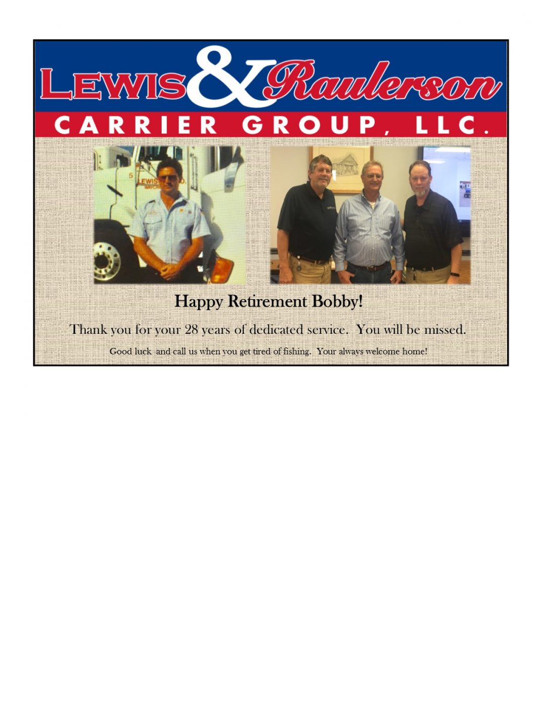 Wishing you all the best, Bobby! Bobby Williams, dedicated employee since 1991!